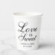 Elegant, simple, and modern "Love is Sweet" wedding paper party cups feature a beautiful black script design. Personalise the custom monogram with the bride and groom's names and wedding date.