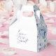 Add elegance to your event with this beautiful favour box featuring the romantic phrase "Love is Sweet" in navy script on a crisp white background. The sides are adorned with a delicate indigo floral pattern, creating a soft and sophisticated look. Perfect for weddings, bridal showers, engagement parties, or anniversaries, this box is ideal for holding sweets, cookies, small gifts, or thank-you treats for your guests. A charming way to wrap up your celebration with love and style.