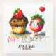 Fun watercolor illustration couple in love: red strawberry and maffin with quote Love is sweet