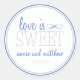 Love Is Sweet Labels / Stickers (Royal Blue / Light Pale Pastel Silver Grey)...These fun and chic love is sweet labels / stickers are ideal for wedding favours or a wedding candy bar / buffet full of chocolate, suckers, lollipops, taffy, and sugar. Let your guests know to take a treat home with them to remember your wedding. The design features an array of whimsical fonts with the bride and groom names as well as the wedding date. Great for a candy themed wedding. Ideal for a destination wedding. Perfect for any bride or groom with a sweet tooth. Great idea for a bridal shower or bachelorette party too. Full customisable...just change the names and the dates and your favour stickers are ready to be used. Available in a wide range of colours to match your wedding colours. See WindyCityStationery.com for our complete line of "Love Is Sweet" labels in a wide range of colours as well as matching "Love Is Sweet" postage stamps, thank you cards, return address labels, save the dates and more.