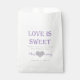 A custom favour bag reading "Love is sweet. Thank you for sharing our special day." Personalised with the bride and groom's names written over a heart, and the wedding date. Perfect for favours, candy buffets, and more!