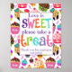 A cute and colourful 'Life or Love is sweet please take a treat' poster. The pattern consists of cute cupcakes and candy - perfect for adding to a tray of sweet favours at your valentines, wedding or engagement party. Or just because :)