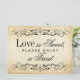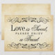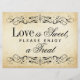 Decorative swirls and flourishes frame this elegant vintage inspired "Love is Sweet, please enjoy a Treat" dessert table sign. Background that has an antique ivory textured style appearance.