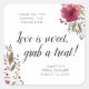 Love Is Sweet Treat Burgundy Floral Bridal Shower Square Sticker