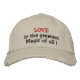 It's super durable and the embroidery hasn't frayed or ripped at all! It's also adjustable in size! Super amazing. Hasn't come off or anything.