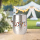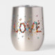 Dozens of beautiful, colorful abstract fluttering butterflies come together to form the word LOVE. The uplifting artwork is a celebration of love, hope and joy in all its forms — gentle, vibrant, and always moving forward. This inspirational stainless steel tumbler will add feel good energy to your wine time.