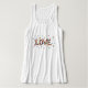 Dozens of beautiful, colorful abstract fluttering butterflies come together to form the word LOVE. The uplifting artwork is a celebration of love, hope and joy in all its forms — gentle, vibrant, and always moving forward. This inspirational scoop neck tank top will bring feel good energy to any outfit.