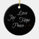 Black background with tiny twinkly lights, and words of Christmas: "Love Joy Hope Peace." Very simple and very pretty!