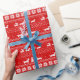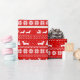 Cute Dachshund Lover’s Christmas Wrapping Paper. Festive red and white Christmas sweater style pattern with Dachshunds wearing holiday sweaters and a squirrel riding a sleigh pulled by Doxies. Text: Love Joy Peace Wiener Dogs. Original gift wrap for Weenie Dog lovers. Visit Jenn’s Doodle World for even more products with this funny Dachsie design, including more gift wrapping supplies.
