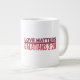 Some days, a regular size cup of joe just won’t do. When you need that extra jolt of caffeine, reach for your extra-large coffee mug from Zazzle. It will accommodate a full 20-ounce Venti pour. Perfect for soup, cereal, ice cream, or chilli too! This giant mug features a C-shaped handle for comfortable sipping.
