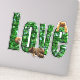 Pictured Is A Big Green Glassy Love Word With Three Fluffy Kittens.