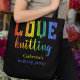 Introducing our vibrant "Love Knitting" tote bag featured in a playful, colourful, knit stitch font. Embrace the artistry and warmth of knitting with this eye-catching tote bag that effortlessly merges style and passion. The perfect gift for knitting lovers! Customise with your knitting group or club name.