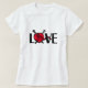 Love knitting slogan t-shirt. Featuring a heart shaped ball of wool illustration in the place of the o in the word love. A cute t-shirt ideal for knitters and knitting groups. Original graphics by Sarah Trett.