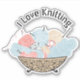 Illustration of bowl filled with skeins of yarn and knitting needles, with "I Love Knitting" text