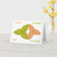 This card was designed for animal lovers, vegetarians and vegans. It features the face of a lamb composed from a leafy pattern. Half the lambs face is green symbolising spring, a time when lambs are born. The other half is a rustic orange symbolising autumn or fall, a time of year that many of the lambs born in spring will never see. This design is perfectly complimented by it's slogan, Love lambs eat leaves. The card has been left blank so you can add your own special greeting. To do this simply click on the “customise it” button. Here you will be able to add your text using a range of fonts and colours. You can also change the background colour of the card.