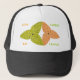 This hat was designed for animal lovers, vegetarians and vegans. It features the face of a lamb composed from a leafy pattern. Half the lambs face is green symbolising spring, a time when lambs are born. The other half is a rustic orange symbolising autumn or fall, a time of year that many of the lambs born in spring will never see. This design is perfectly complimented by its slogan, Love lambs eat leaves.