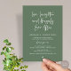 Mark the beginning of your forever with elegance using our contemporary forest sage green themed wedding elopement celebration invitation card, "Love Laughter and happily ever after". Perfect for couples extending their joyous occasion, this invitation exudes sophistication with a hint of playfulness, setting the stage for a memorable event. Adorned with a timeless modern script design theme, it adds a touch of refined charm to your festivities. Crafted by TeeshaDerrick, this invitation promises to beautifully capture your love story.