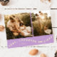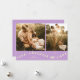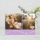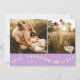 Modern and whimsical holiday card for families featuring a curved text that says "love laughter and light" with 2 photos on the front and 1 on the back. The background is wisteria.