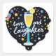Playful and joyful sticker featuring handwritten font, champagne glasses clinking, and confetti stars. A fun addition to wedding celebrations and thank-you gifts