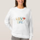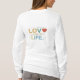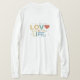 Write a short description of the t-shirt design for the image of "Love, Laughter, Life."