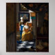 Johannes Vermeer (October 1632 – December 1675), in original Dutch Jan Vermeer van Delft, was a Dutch Baroque Period painter who specialised in domestic interior scenes of middle class life. During his lifetime, he was a moderately successful provincial genre painter, recognised in Delft and The Hague. Nonetheless, he produced relatively few paintings and evidently was not wealthy, leaving his wife and children in debt at his death. Vermeer worked slowly and with great care, and frequently used very expensive pigments. He is particularly renowned for his masterly treatment and use of light in his work. "Almost all his paintings," Hans Koningsberger wrote, "are apparently set in two smallish rooms in his house in Delft; they show the same furniture and decorations in various arrangements and they often portray the same people, mostly women." His modest celebrity gave way to obscurity after his death. He was barely mentioned in Arnold Houbraken's major source book on 17th-century Dutch painting (Grand Theatre of Dutch Painters and Women Artists) and was thus omitted from subsequent surveys of Dutch art for nearly two centuries. In the 19th century, Vermeer was rediscovered by Gustav Friedrich Waagen and Théophile Thoré-Bürger, who published an essay attributing 66 pictures to him, although only 34 paintings are universally attributed to him today. Since that time, Vermeer's reputation has grown, and he is now acknowledged as one of the greatest painters of the Dutch Golden Age. Quote:Wikipedia