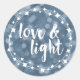 Happy Hanukkah! Add the perfect finishing touch to your envelopes or gifts with these festive stickers. Design features a blue bokeh background, starry white frame, and "Love & Light" in white brushstroke text.