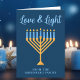Love & Light Custom Blue Gold Hanukkah Menorah Holiday Card