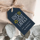 Dress up your Hanukkah gifts with these festive tags. Design features a rich navy blue background with "love, light, latkes" in white lettering accented with golden yellow stars. Customise with a name and/or personalised Hanukkah greeting. Blank on reverse side.