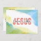 Postcard depicts a modern abstract watercolor background with shades of blue and green. It features a powerful inspirational Christian quote, "Love Like Jesus." The back features Bible Verse John 15:12, "Love one another as I have loved you." The greeting, prayer can be personalised or deleted for a hand written message.