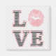 This design features a pastel set of lips and LOVE in a black and white striped pattern.