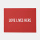 Welcome guest and yourself with this uplifting red door mat. Customise the background colours for a unique look that fits your style and house decor.