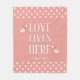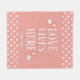 LOVE LIVES HERE Pink Fleece Blanket with CUSTOMIZABLE TEXT. Modern, stylish PINK Fleece Blanket, designed with LOVE LIVES HERE in white typography and CUSTOMIZABLE Scripture reference which you can personalise by adding your (family) name. 1 John 4:16 says "God is love, and he who abides in love abides in God, and God in him." Feminine colour scheme of PINK and WHITE, with optional double heart graphics, which you can delete if desired. Matching blanket and other colours available.