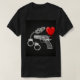 A stark, vintage-style drawing of a single handcuff and a revolver juxtaposed against a bleeding red heart. The image is rendered in black and white, with a stark contrast between the dark background and the piercing red of the heart. The design evokes a sense of danger, loss, and the potential for violence.