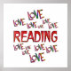 Help promote reading and share your love for it with this fun design with lots of "love" and the word - Reading.