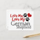 "Love me, love my German Shepherd". A tried and true statement that celebrates your best friend, the German Shepherd. Available on t-shirts, mugs, caps, bags, buttons & more