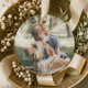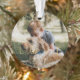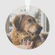 Cherish the wonderful memories forever with our custom pet memorial christmas ornaments. Our design features a beautiful festive and magical design with a large photo placeholder for you to personalise with your own beautiful pet's photo. A beautiful faux gold starry star pattern is placed along the top and bottom of the pet photo. "Love" is displayed in faux gold with a cute little faux gold dog paw print placed within the letter "O". Personalise with your pet's name. Artwork by Moodthology Papery.