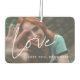 Get a customised air freshener with a picture of your kids, your significant other, or even your dog! Modern, with the word "Love" written with a minimalist typography, and a custom message for your loved one.