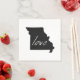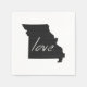 Do you really adore the bullion state of Missouri? Sharing the love for your home and favourite state of Missouri has never been easier then with these Missourian love paper party napkins with the silhouette outline map shape of the show me state filled in solid black like a chalk board with the word love written in white chalk.
