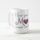 The Mum mug tells how much you love her to the moon and back, with a heart attached for the letter o in Mum and xoxox's to give her hugs and kisses.