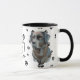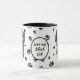 This mug for the black Labrador Retriever Dog owner features an artist's watercolor portrait of a black Lab. The image is printed twice, and between them is an oval with the black text that says "Love my Black Lab". The oval and dog images are placed on a background sprinkled with black paw prints. You may easily change the text to something else, or personalise it, if you'd like.