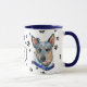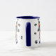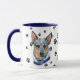 This mug for the Australian Cattle Dog owner features an artist's watercolor portrait of a beautiful blue and tan Cattle Dog wearing a blue collar. The image is printed twice, and between them is an oval with the black text that says "Love my Cattle Dog". The oval and dog images are placed on a white background sprinkled with black paw prints. You may easily change the text to something else, or personalize it, if you'd like.