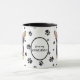 This mug for the Chihuahua owner features an artist's watercolor portrait of an adorable black and tan Chihuahua. The image is printed twice, and between them is an oval with the black text that says "Love my CHIHUAHUA". The oval and dog images are placed on a background sprinkled with black paw prints. You may easily change the text to something else, or personalise it, if you'd like.