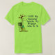 A wacky saying on a weirder colour shirt. I love my computer because my friends live in it says it all.