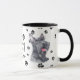This mug for the Scottish Terrier Dog owner features an artist's watercolor portrait of a Scottie. The image is printed twice, and between them is an oval with the black text that says "Love my Scottie". The oval and dog images are placed on a background sprinkled with black paw prints. You may easily change the text to something else, or personalise it, if you'd like.