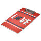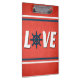 Love nautical design with sailing wheel and stripes decoration on grunge red background