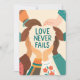 A card that celebrates unity, diversity, and enduring love among spiritual brothers and sisters. The intertwined hands form a heart that frames the central message: “Love Never Fails.” Perfect for expressing gratitude, affection, and support in special or everyday moments.