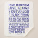 Our "Love Never Fails" (1 Corinthians 13) blanket is the perfect housewarming, wedding, or anniversary gift. This blanket is a wonderful addition to any bedroom or sofa.