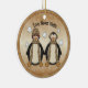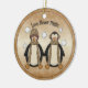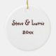 Adorable country style penguin couple with snow falling and the words "Love Never Melts". Personalise on the back with your names and the year.