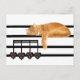 Long haired orange tabby kitty cat takes a snooze on a music bar with black hearts as the notes to say that even when he's sleeping he's thinking soft warm thoughts of you cat lovers Valentine's Day or just plain loving postcard