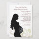 Feature the baby's *ultrasound in this beautiful baby shower design. The white background has tan and white flowers and swirls and a silhouette of a pregnant woman with a baby in her womb. *Don't have an ultrasound of the baby? Use this generic ultrasound provided.